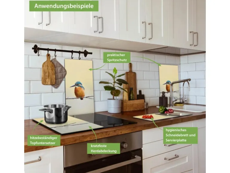 Banjado Herdabdeckplatte Glas 2 Teilig Je 30x52CM Schneidebrett Herdabdeckung Mit Motiv Pause