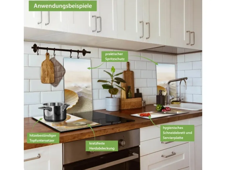 Banjado Herdabdeckplatte Glas 2 Teilig Je 30x52CM Schneidebrett Herdabdeckung Mit Motiv Perlenmuschel