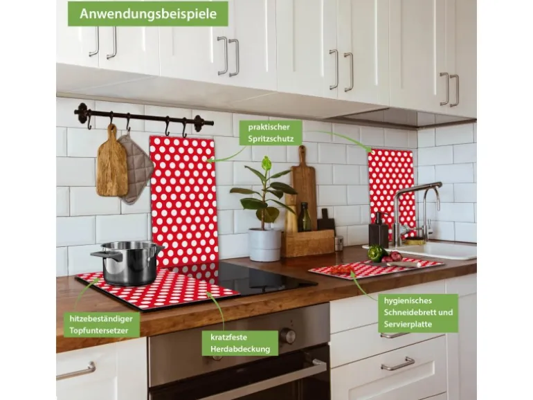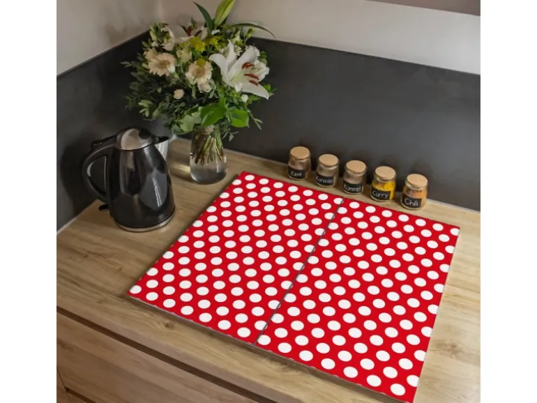 Banjado Herdabdeckplatte Glas 2 Teilig Je 30x52CM Schneidebrett Herdabdeckung Mit Motiv Punkte Rot