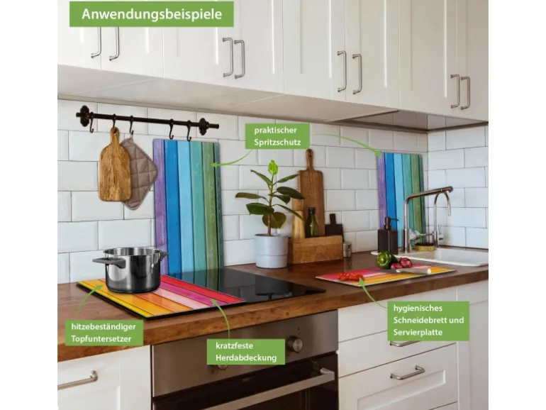 Banjado Herdabdeckplatte Glas 2 Teilig Je 30x52CM Schneidebrett Herdabdeckung Mit Motiv Regenbogenfarben