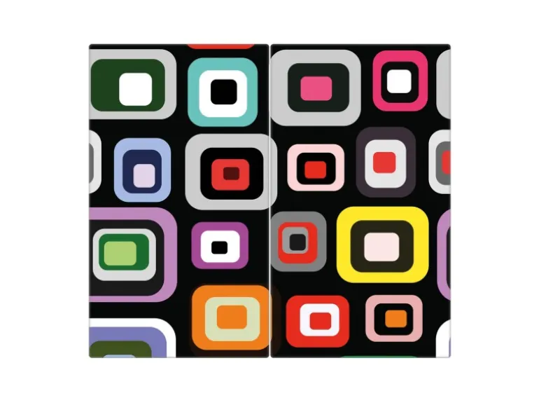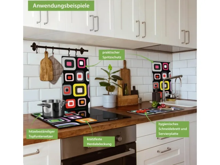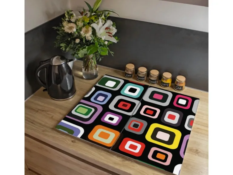 Banjado Herdabdeckplatte Glas 2 Teilig Je 30x52CM Schneidebrett Herdabdeckung Mit Motiv Retro