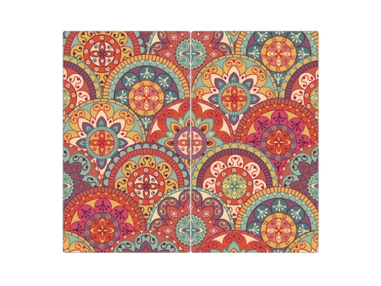 Banjado Herdabdeckplatte Glas 2 Teilig Je 30x52CM Schneidebrett Herdabdeckung Mit Motiv Rosetten