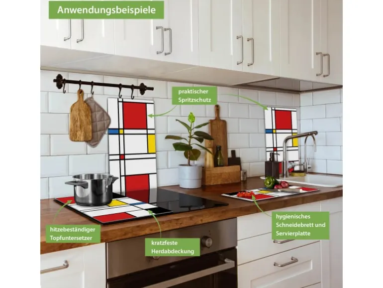 Banjado Herdabdeckplatte Glas 2 Teilig Je 30x52CM Schneidebrett Herdabdeckung Mit Motiv Rot Gelb Blau