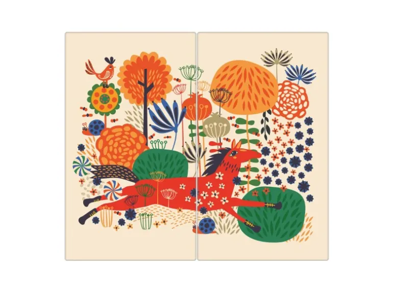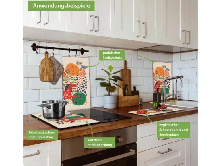 Banjado Herdabdeckplatte Glas 2 Teilig Je 30x52CM Schneidebrett Herdabdeckung Mit Motiv Rotes Pferd