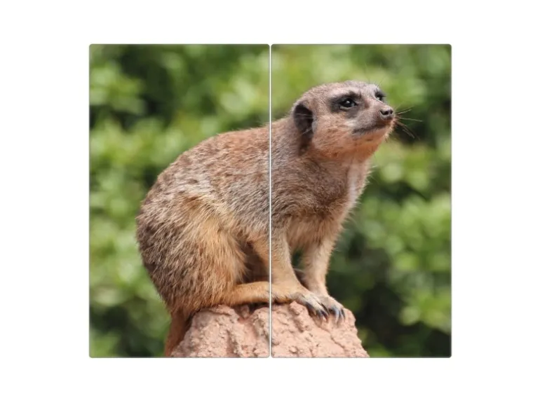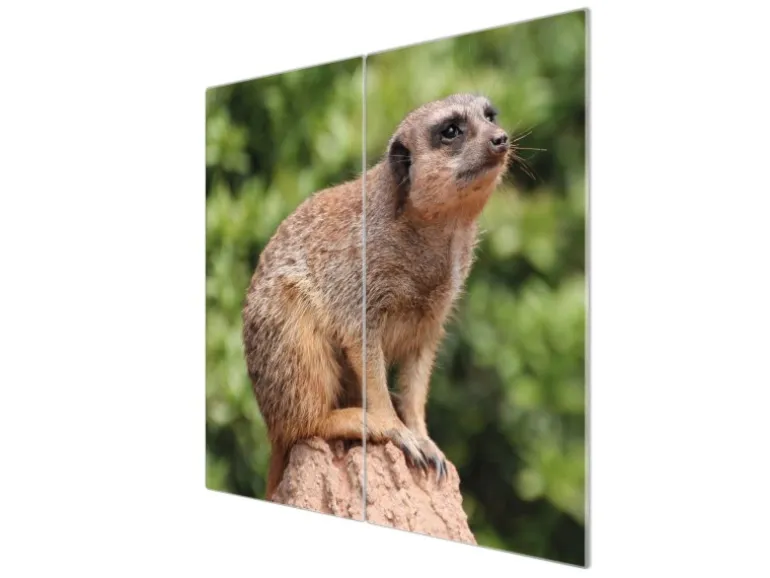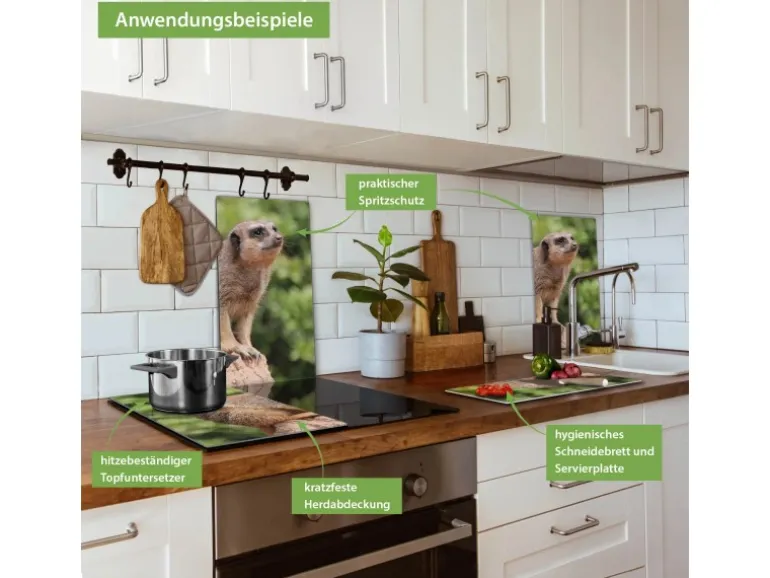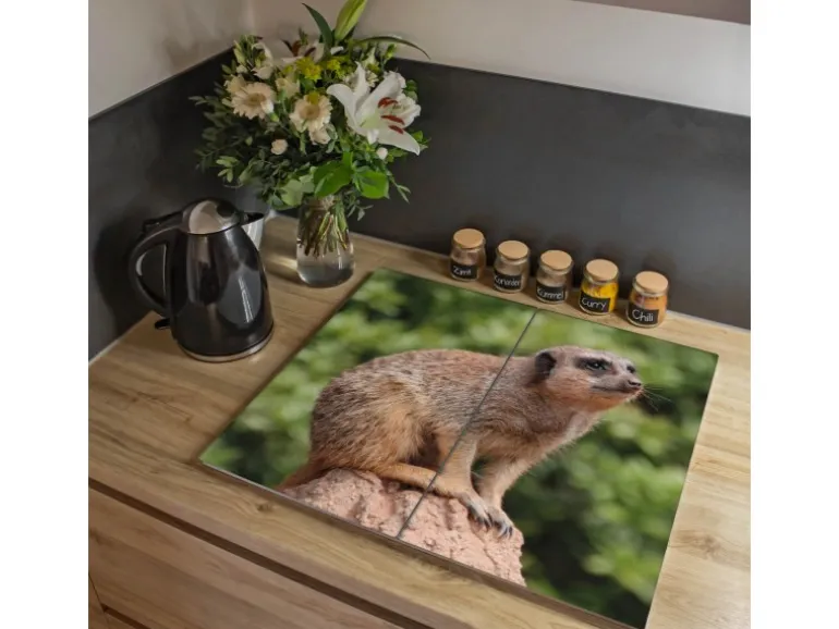Banjado Herdabdeckplatte Glas 2 Teilig Je 30x52CM Schneidebrett Herdabdeckung Mit Motiv Sitzendes Erdmännchen