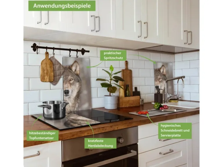 Banjado Herdabdeckplatte Glas 2 Teilig Je 30x52CM Schneidebrett Herdabdeckung Mit Motiv Soraya