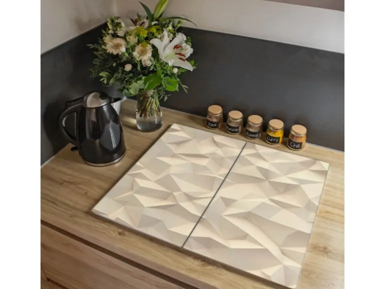 Banjado Herdabdeckplatte Glas 2 Teilig Je 30x52CM Schneidebrett Herdabdeckung Mit Motiv Steinwand 2