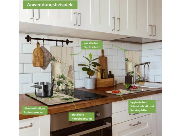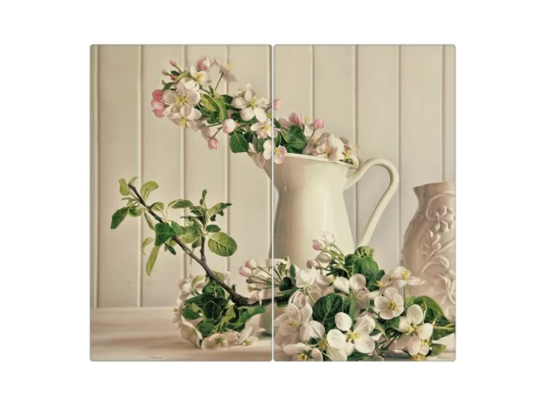 Banjado Herdabdeckplatte Glas 2 Teilig Je 30x52CM Schneidebrett Herdabdeckung Mit Motiv Stillleben Kirschblüten