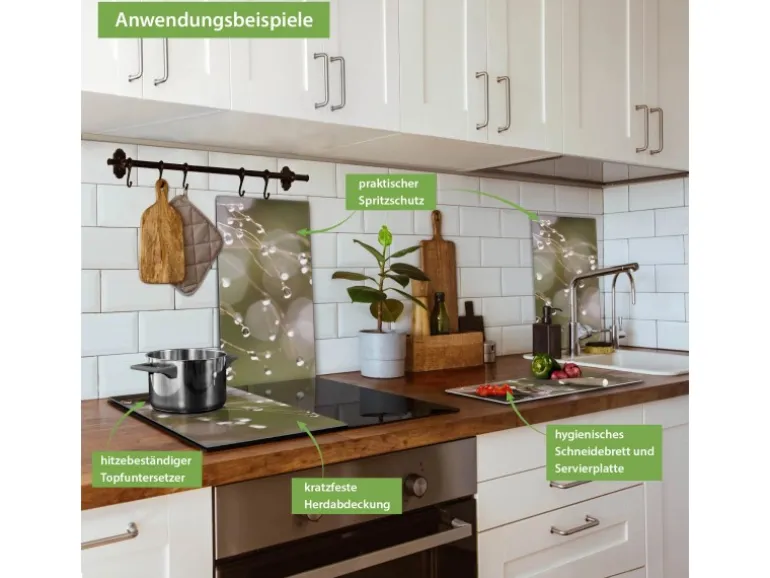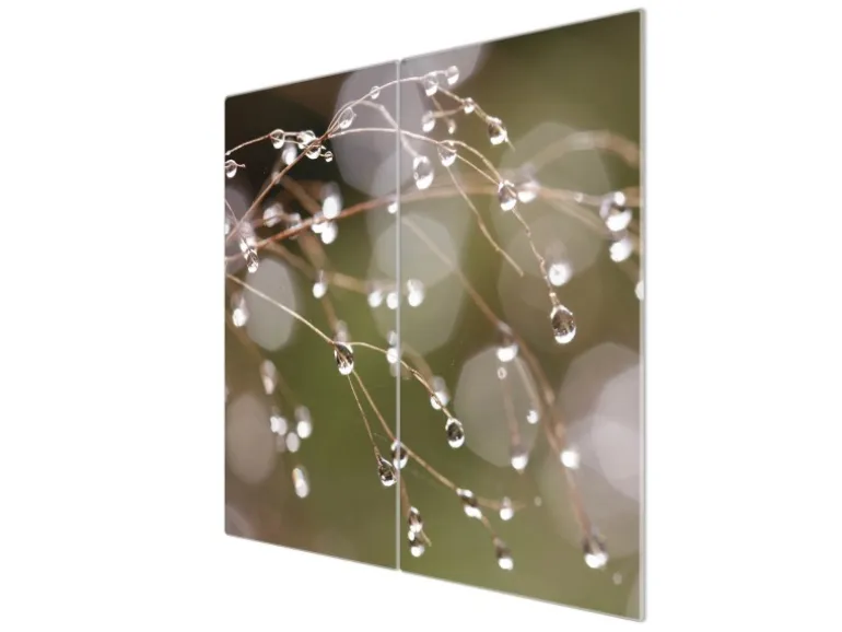 Banjado Herdabdeckplatte Glas 2 Teilig Je 30x52CM Schneidebrett Herdabdeckung Mit Motiv Tau Auf Zweigen