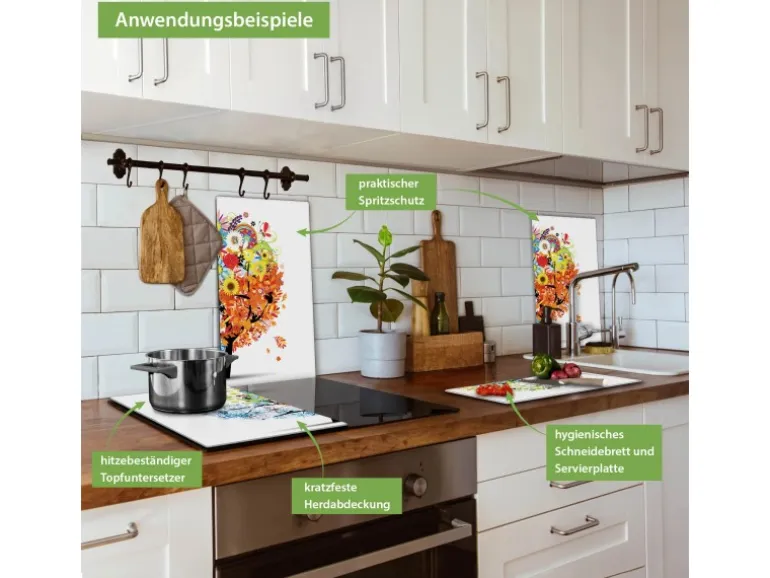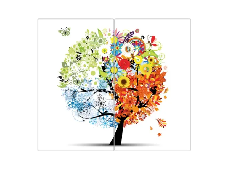 Banjado Herdabdeckplatte Glas 2 Teilig Je 30x52CM Schneidebrett Herdabdeckung Mit Motiv Vier Jahreszeiten