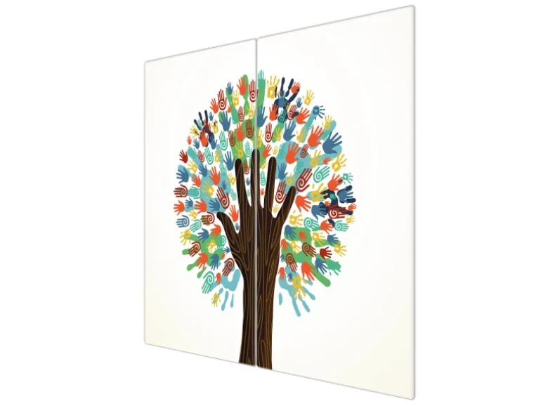 Banjado Herdabdeckplatte Glas 2 Teilig Je 30x52CM Schneidebrett Herdabdeckung Mit Motiv We Are The World