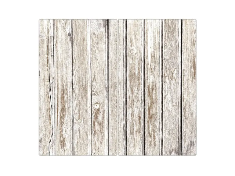Banjado Herdabdeckplatte Glas 2 Teilig Je 30x52CM Schneidebrett Herdabdeckung Mit Motiv Weißes Holz