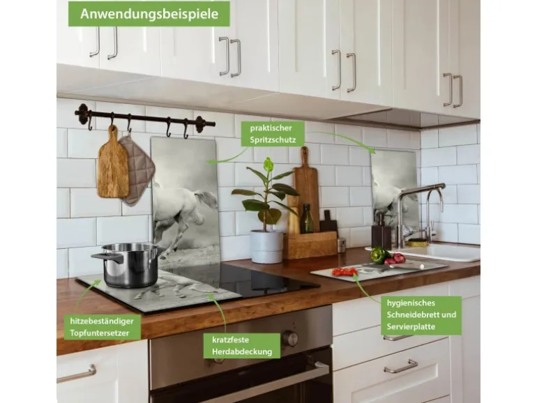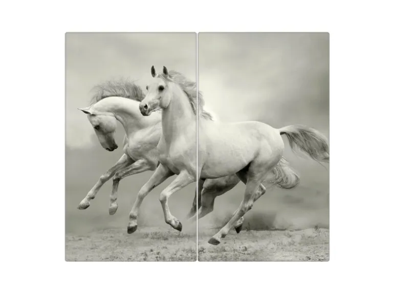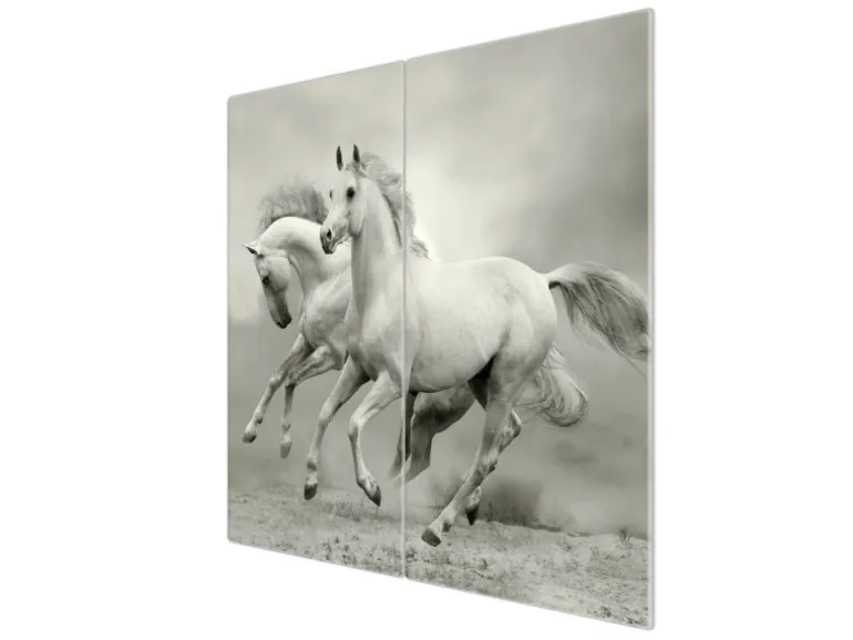 Banjado Herdabdeckplatte Glas 2 Teilig Je 30x52CM Schneidebrett Herdabdeckung Mit Motiv Wilde Pferde Sw