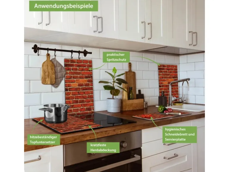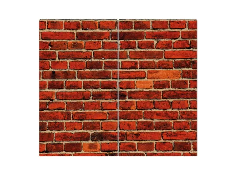 Banjado Herdabdeckplatte Glas 2 Teilig Je 30x52CM Schneidebrett Herdabdeckung Mit Motiv Ziegelwand