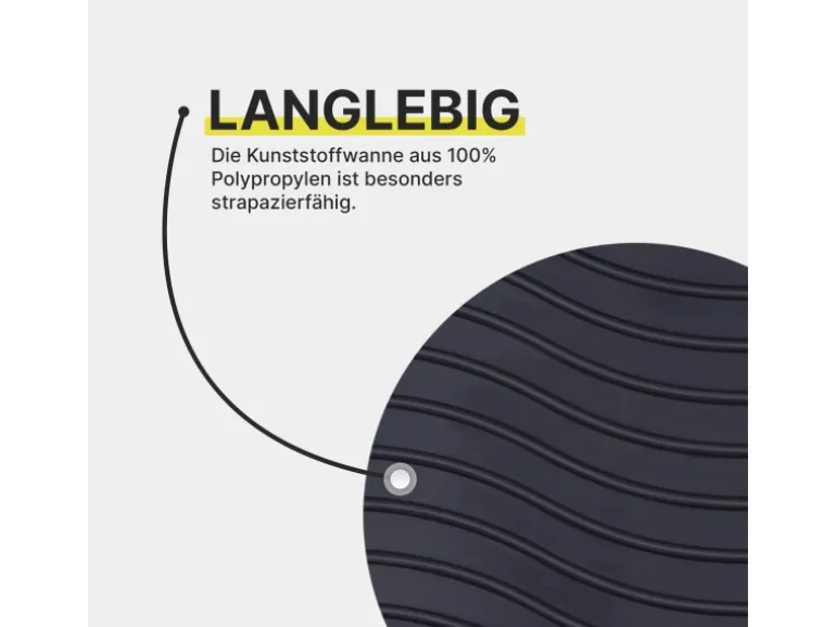 Unsere Abtropfschalen in verschiedenen Größen bieten ausreichend Platz für bis zu Schuhe. Ob Stiefel, Wanderschuhe, Gummistiefel oder Sneakers – für jede Schuh Art ist ausreichend Platz vorhanden. Dies macht die Unterlage zur idealen Lösung für den Eingangsbereich, Flur oder auch das Badezimmer, wo sie für Ordnung sorgt und den Boden sauber hält.