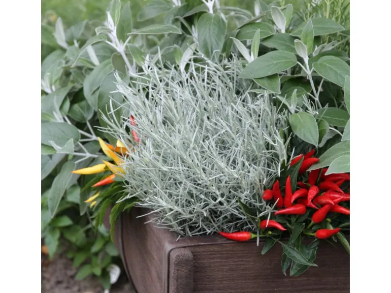 Helichrysum Angustifolia: Currykraut betört durch einen angenehmen Geruch, der sofort an Curry-Gerichte erinnert. Besonders intensiv wird dieser Geruch vor allem bei Sonnenschein. Man verwendet das Currykraut unter anderem als Gewürz, aber auch als Heilkraut bei Husten oder Hautproblemen. Currykraut hat mit dem bekannten Currypulver jedoch nichts gemeinsam. Dieses ist nämlich eine Gewürzmischung, die aus der britischen Kolonialzeit in Indien stammt.