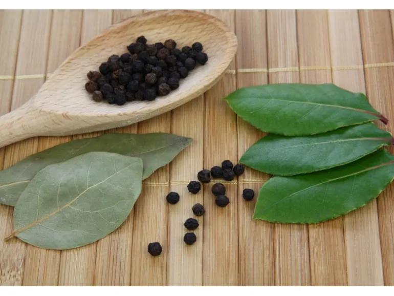 Verwendung: Die Lorbeerblätter enthalten ätherische Öle, die vor allem bei der Verdauung helfen. Man kann sie frisch oder auch getrocknet verarbeiten. Sie werden zum Würzen von Suppen, Soßen, Eintöpfen, Fisch- und Fleischgerichten verwendet. Die Blätter ohne Stiel unzerkleinert beim Kochen zugeben und vor dem Anrichten wieder entfernen. Lorbeer sollte eher sparsam verwendet werden. Auch nach dem Essen leistet er als Tee aufgegossen gute Dienste.
