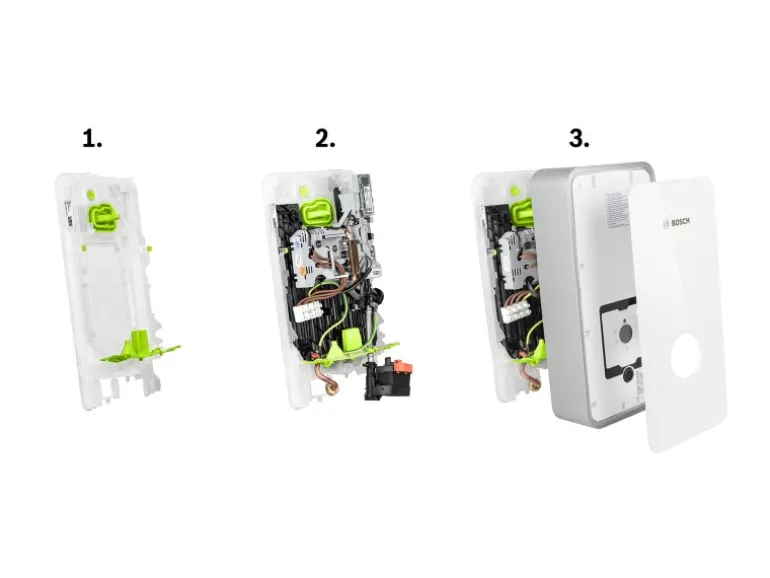 Die Internetfähigkeit ist nachrüstbar. Einfach die Frontabdeckung entfernen, um das WIFI-Gateway (Zubehörteil) selbst zu verbinden. Mit der Bosch HomeCom Easy App kann der Warmwasserbereiter per Smartphone von überall aus bedient und der Verbrauch überwacht werden.