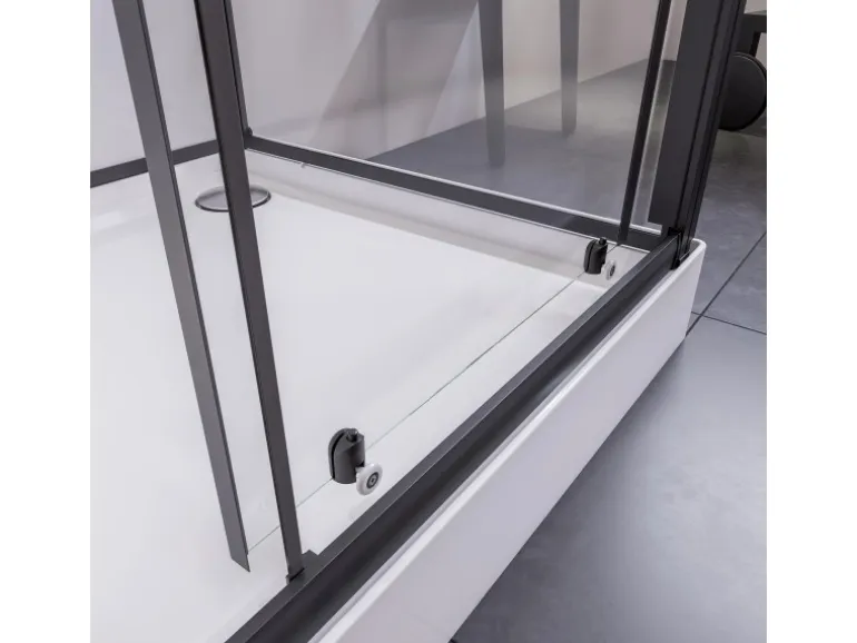 Diese Komplettdusche kann überall dort platziert werden, wo ein Wasseranschluss vorhanden ist. Ein besonderer Vorteil ist, dass die Verwendung von Silikon und die damit verbundenen Silikonisierungs Arbeiten entfallen. Zudem ermöglichen die ausschwenkbaren Türelemente eine komfortable Reinigung. Die Schiebetür dieses Modells hat den Anschlag auf der rechten Seite.