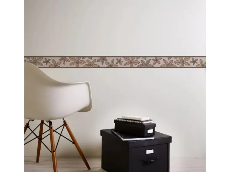 Bricoflor Selbstklebende Küchenbordüre in Beige und Braun Schmale Tapetenborte mit Blumen Florale Küchen Tapeten Bordüre mit Vinyl