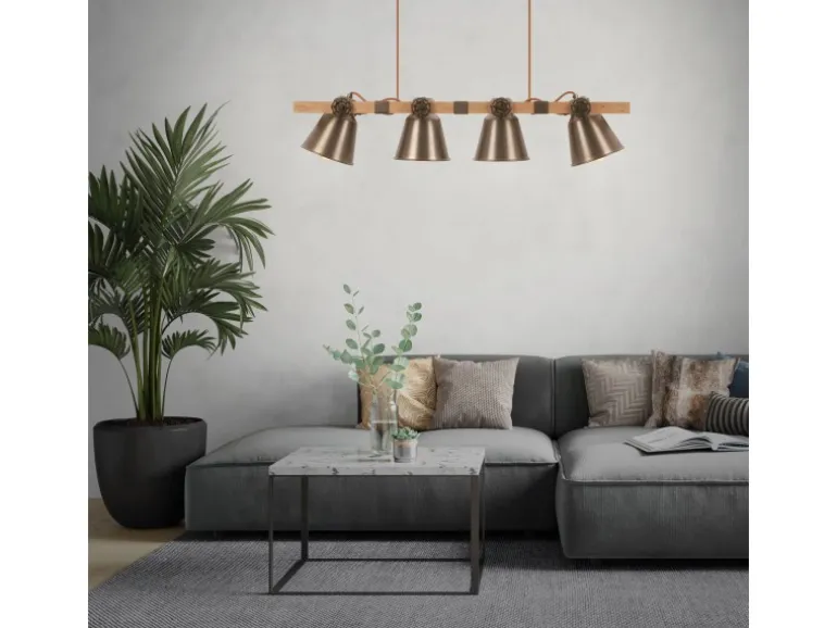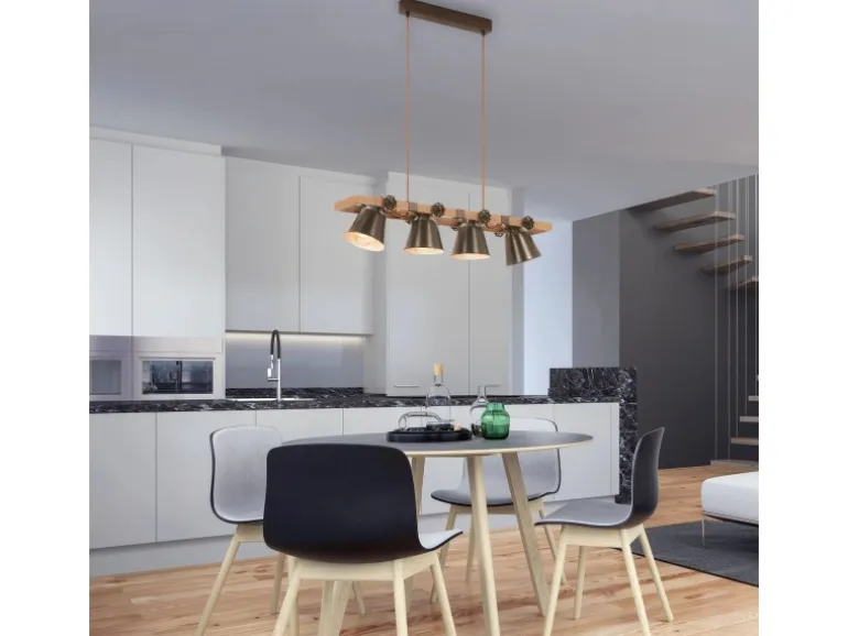Die Pendelleuchte ist für vier E27-Leuchtmittel ausgelegt (je max. 40W, nicht im Lieferumfang enthalten), sodass Sie die Helligkeit und Lichtfarbe individuell anpassen können. Die schwenkbaren Köpfe bieten zusätzliche Flexibilität bei der Lichtausrichtung, ideal für die Beleuchtung von Esstischen, Kücheninseln oder Wohnbereichen.