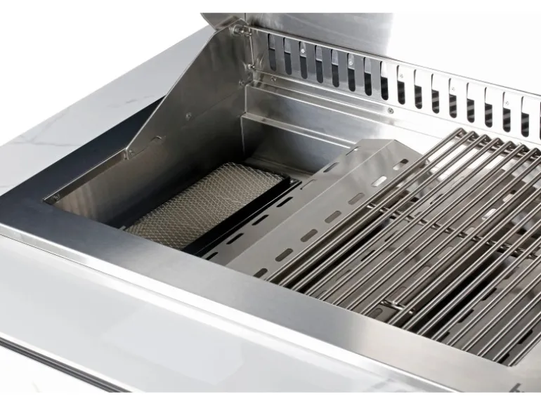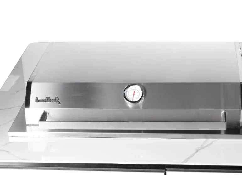 – Moderne und flache Grillhaube aus Edelstahl, für ein ansprechendes Design der Outdoor Küche