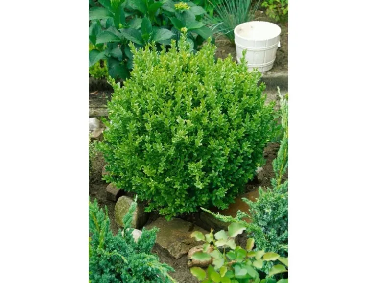 Der Buxus sempervirens ‚Suffruticosa‘ wächst buschig und kompakt.