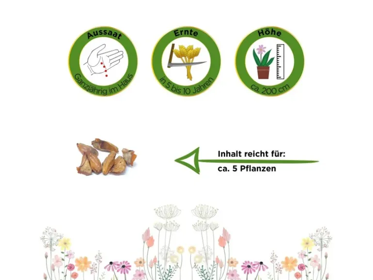 Der imposante Wuchs, die glänzenden Nadeln und der wohlriechende Duft machen die Nordmanntanne zum beliebtesten Baum für die Festtage.Aussaat: Aussaat ganzjährig im Haus möglich. Die Samen müssen stratifiziert werden: 1-2 Tage ins Tiefkühlfach legen. Anschließend für 2 Wochen in feuchtem Sand, mit Folie abgedeckt in den Kühlschrank stellen.Keimung: Nach dem Stratifizieren 24h in Wasser vorquellen. Anzuchtgefäß empfohlen. Keimt bei 15-25°C nach 30-50 Tagen. Gleichmäßig feucht halten.Pflege: Jungpflanzen können von Spätsommer bis Frühling ausgepflanzt werden. Wächst anfangs langsam.Standort: Halbschattiger Standort (ideal am Nordhang). Humusreicher, tiefgründiger Boden mit gleichmäßiger Feuchte. Jährlich düngen.Inhalt: reicht für ca. 5 Pflanzen