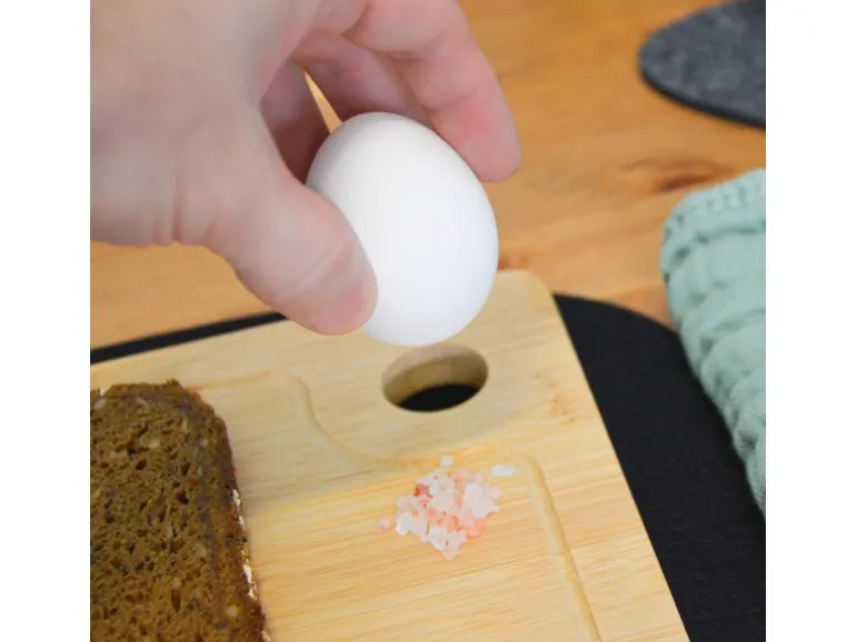 Die Öffnung ersetzt sogar den Eierbecher – und Dein Kochbrett wird zum Frühstücksbrett.