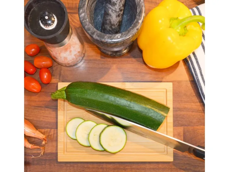 Das Bambusholz ist extra strapazierfähig – aber immer sanft zum Messer.