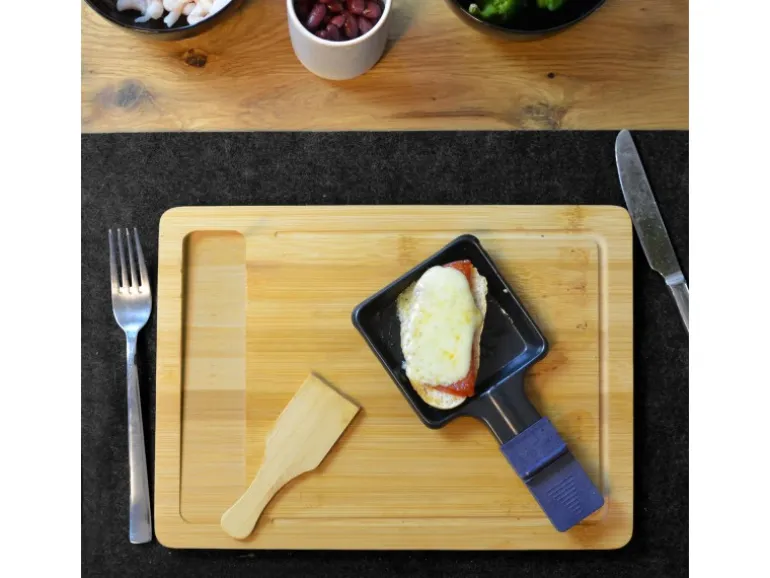 Unsere Schieber aus hochwertigem Bambus hinterlassen keine Kratzer auf dem Raclettepfännle.