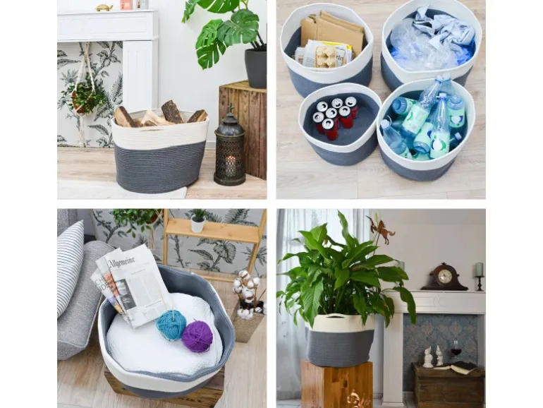 Für Decken und Kissen im Schlafzimmer, Handtücher im Bad, Wäsche im Kleiderschrank oder als XL Blumentopf: Für die passende Höhe kannst Du den Seilkorb sogar krempeln.
