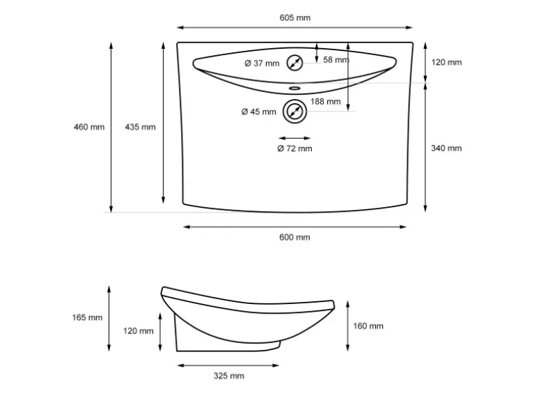 1 x Keramik Waschbecken ca. 605 x 460 x 165 mm