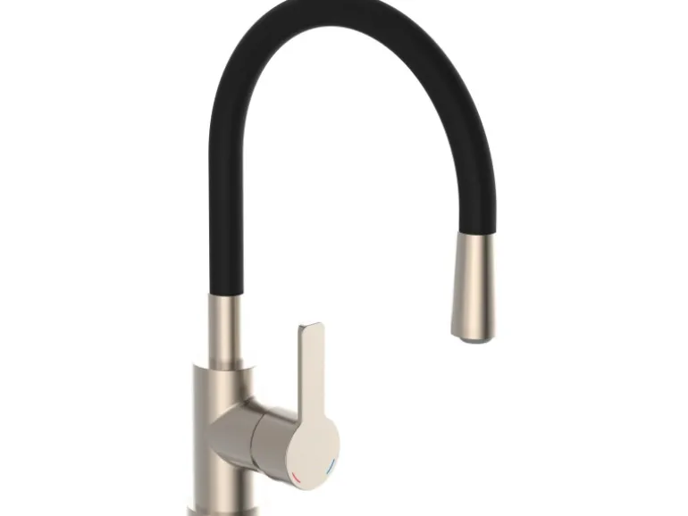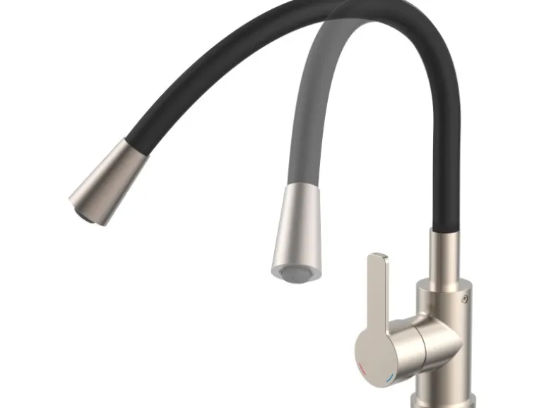 Der Auslauf der Küchenarmatur in Soft Touch Qualität lässt sich komfortabel in alle Richtungen biegen