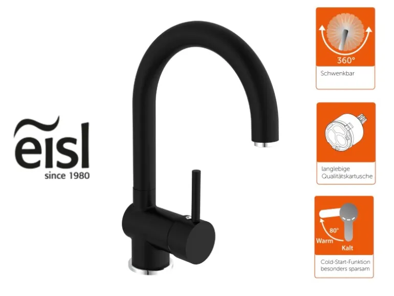 360° Schwenkbereich für einen komfortablen Aktionsradius, ideal auch für Doppelspülbecken