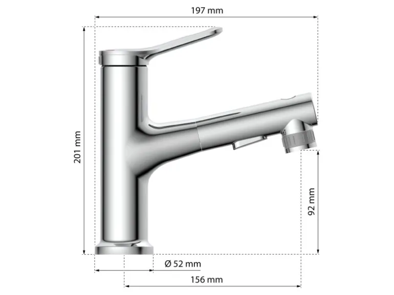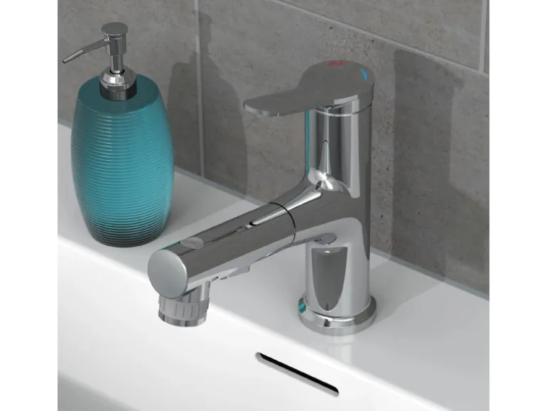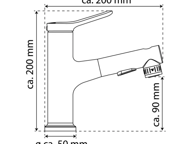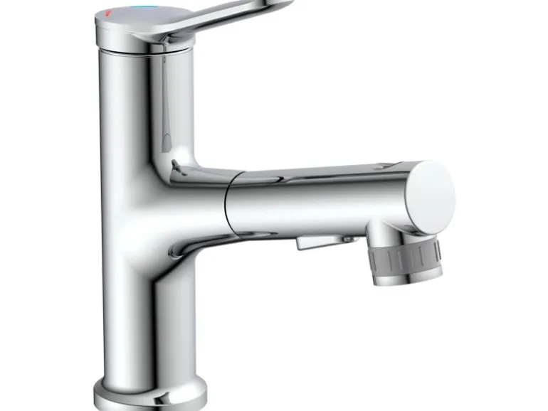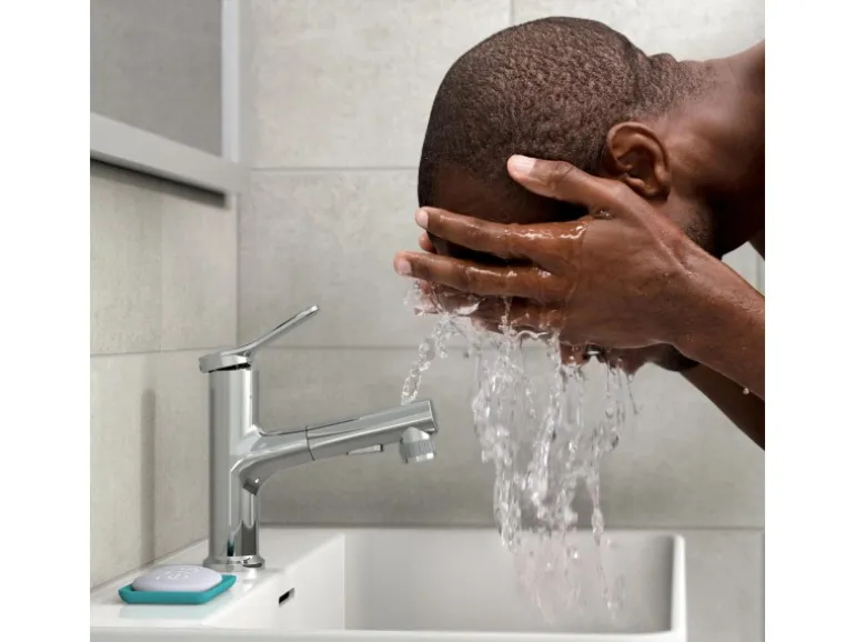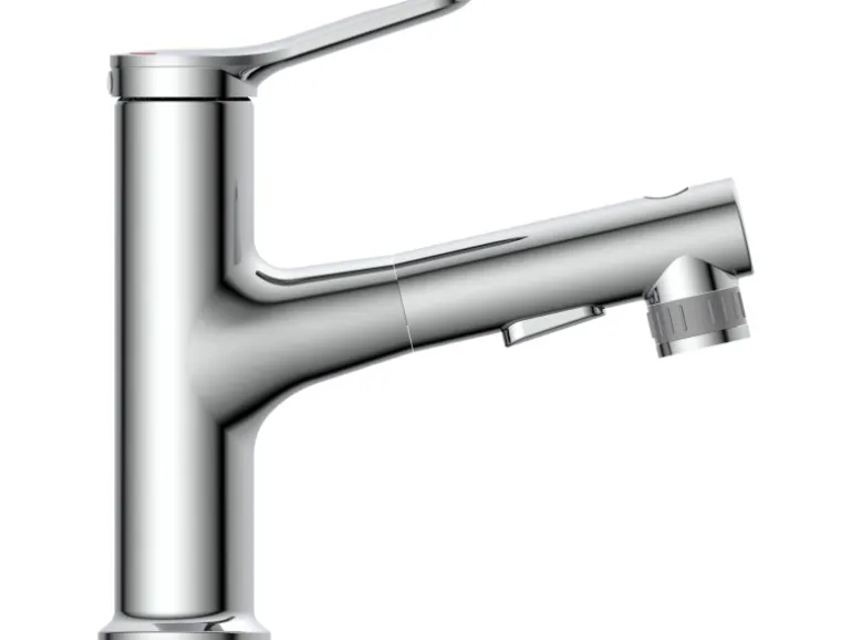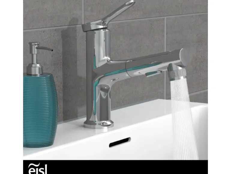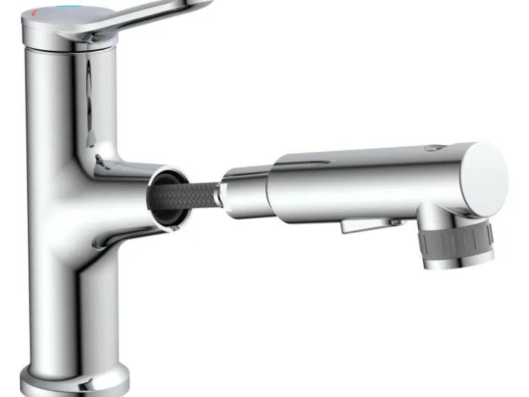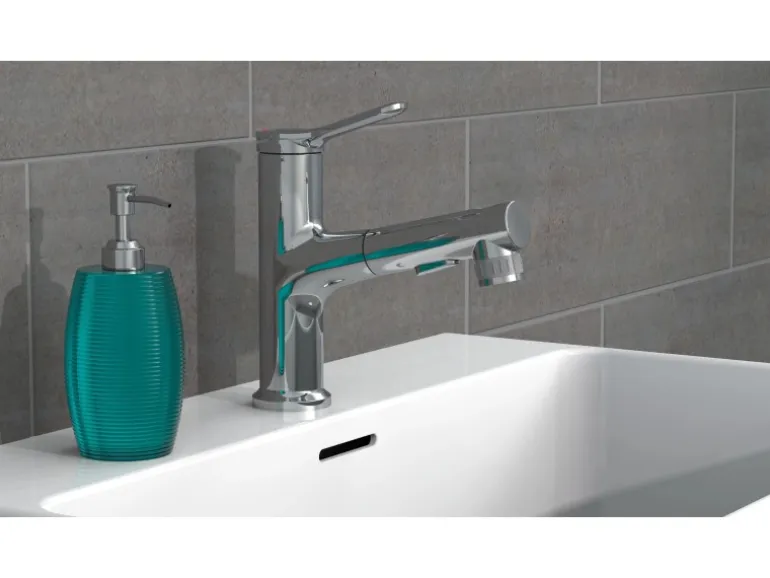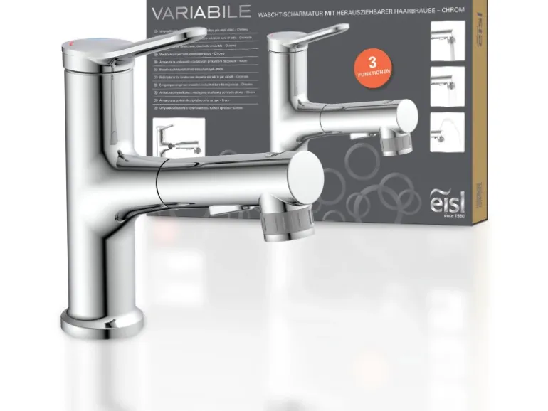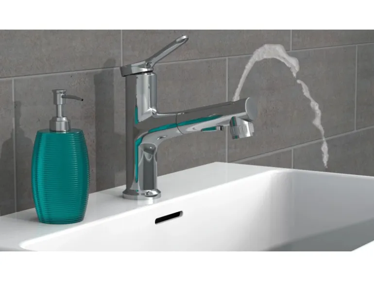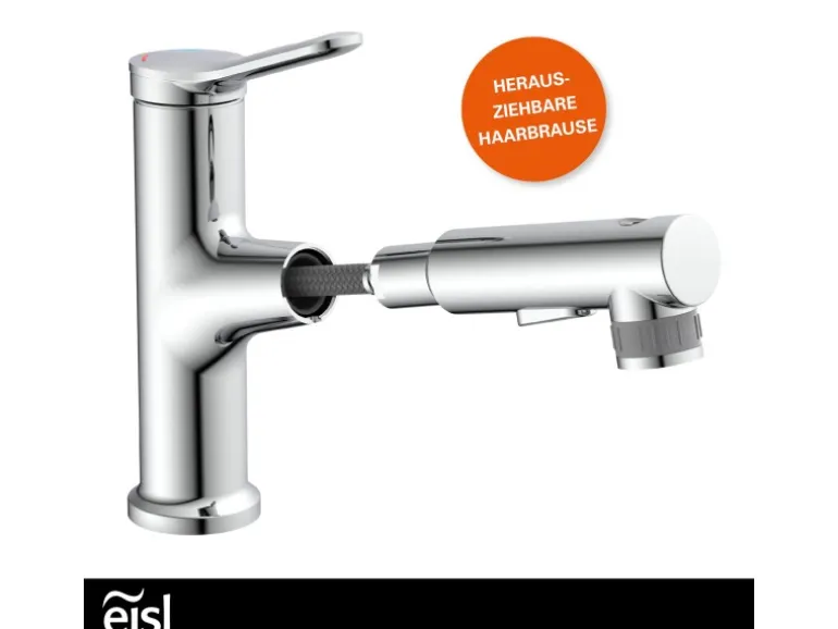 Die ausziehbare Brause des Wasserhahns kann perfekt zum Haarewaschen oder zum Befüllen von Gefäßen genutzt werden