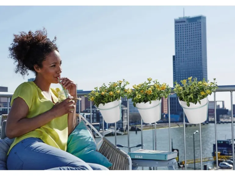 Mit diesem schönen und praktischen Elho Blumentopf Loft urban potholder für Ihr Geländer zaubern Sie im Handumdrehen eine grüne Aussicht auf Ihren Balkon. Der Balkontopf wird zusammen mit der Halterung verkauft, damit Sie ihn direkt an Ihrem Balkon aufhängen können. Der Blumentopf hat ebenfalls ein Wasserreservoir. Wenn es regnet, wird das überschüssige Wasser für Zeiten gespeichert, in denen Ihre Pflanze dieses benötigt.