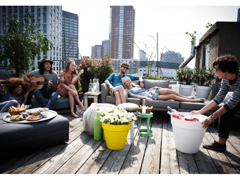 Der Elho Blumentopf Loft Urban Rund mit Rollen Ø 48,5 cm Ocker besticht durch sein industrielles Design. Gestalten Sie Ihren Balkon, Garten oder Ihre Dachterrasse mit dieser urban-Kollektion von elho schön grün. Die Pflege der Pflanzen ist für Sie kein Problem: Jeder Topf wird mit einem integrierten Wasserreservoir geliefert, das das überschüssige Wasser und Regenwasser speichert. Dieser runde Blumentopf ist ebenfalls mit Rollen ausgestattet, wodurch Sie Ihre Terrasse immer wieder aufs Neue einteilen oder mehr Platz für beispielsweise eine Gartenparty schaffen können. Erhältlich in den verschiedensten Farben, wodurch Sie endlos kombinieren und Ihre eigene Atmosphäre kreieren können.