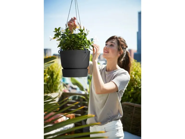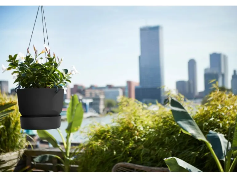 Mit der Elho Hängeampel Greenville finden Sie immer den idealen Platz für Ihre Pflanzen – indem Sie sie aufhängen. Hierfür eignet sich diese Hängeampel optimal, denn Sie können diese an einem schönen Platz auf Ihrem Balkon, an einem Zaun oder einer Wand aufhängen. Hinter der klaren, nahtlosen Aufmachung dieses Designer-Pflanztopfes verbirgt sich ein praktisches integriertes Wasserreservoir, das Ihre Pflanzen gleichmäßig mit Feuchtigkeit versorgt. Der Pflanzbehälter ist der ideale Begleiter für Haus und Garten.