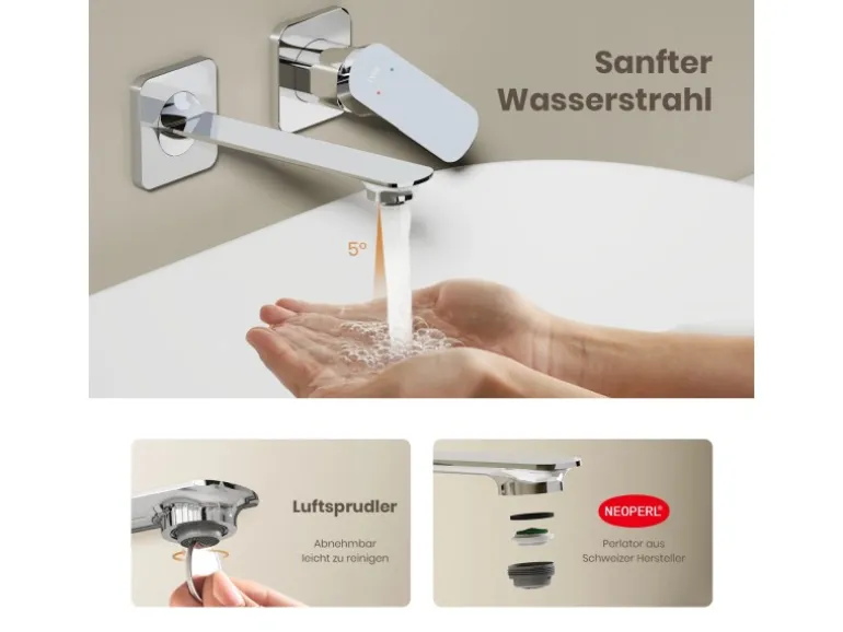 Wasserersparnis: Neoperl Perlator sorgt für sanften Wasserfluss und spart bis zu 30% Wasser.