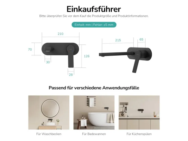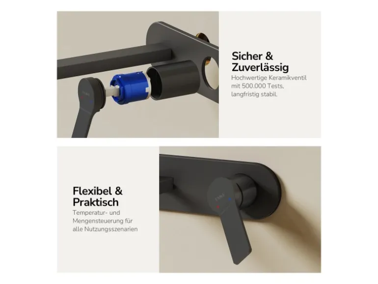 Emke Wand Waschtischarmatur Inklusive Grundkörper 288 x 210 x 70 mm Schwarz Mischbatterie für Waschbecken
