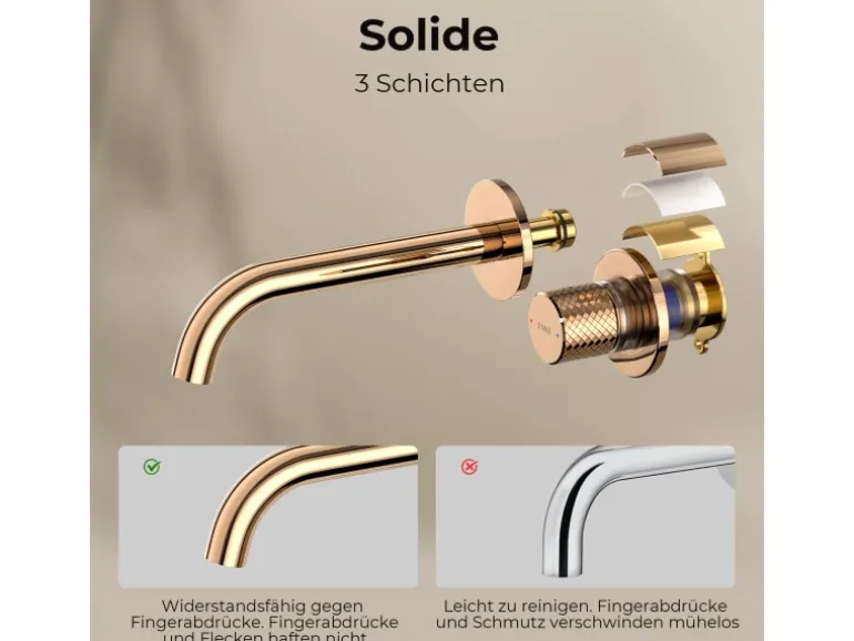 Emke Waschtischarmatur Unterputz für Wandmontage Rosengold Wasserhahn Badarmatur