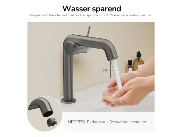 Wasserersparnis: Neoperl-Perlator sorgt für einen sanften Wasserfluss und spart bis zu 30 % Wasser.