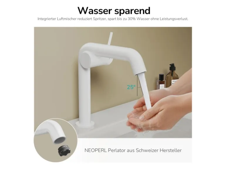 Wasserersparnis: Neoperl-Perlator sorgt für einen sanften Wasserfluss und spart bis zu 30 % Wasser.