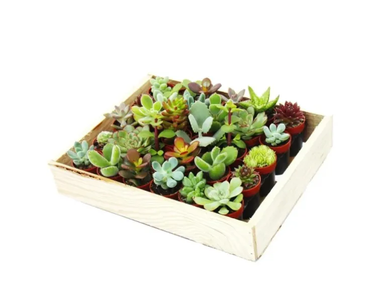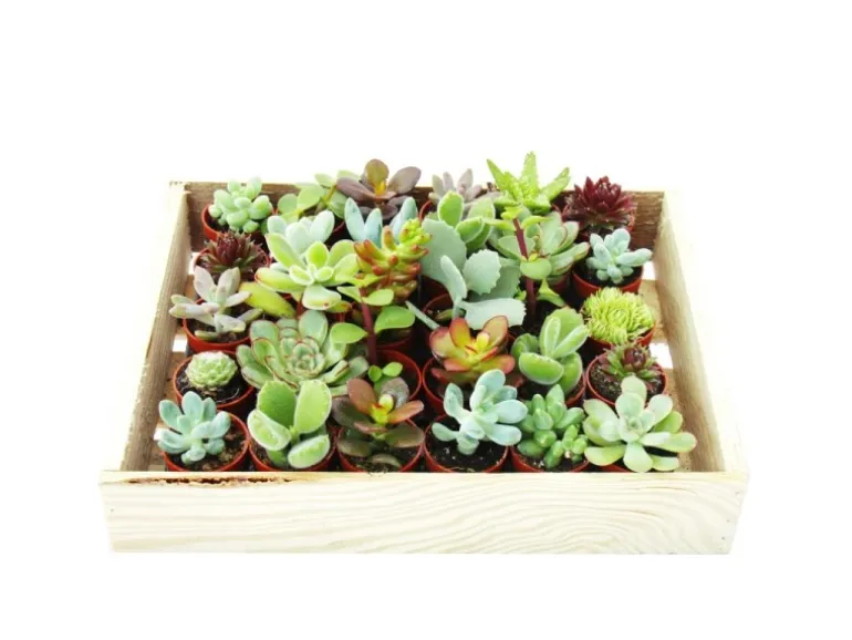 Exotenherz Mini-Sukkulenten 3,5cm Topf Holzkiste Mit 30 Pflanzen