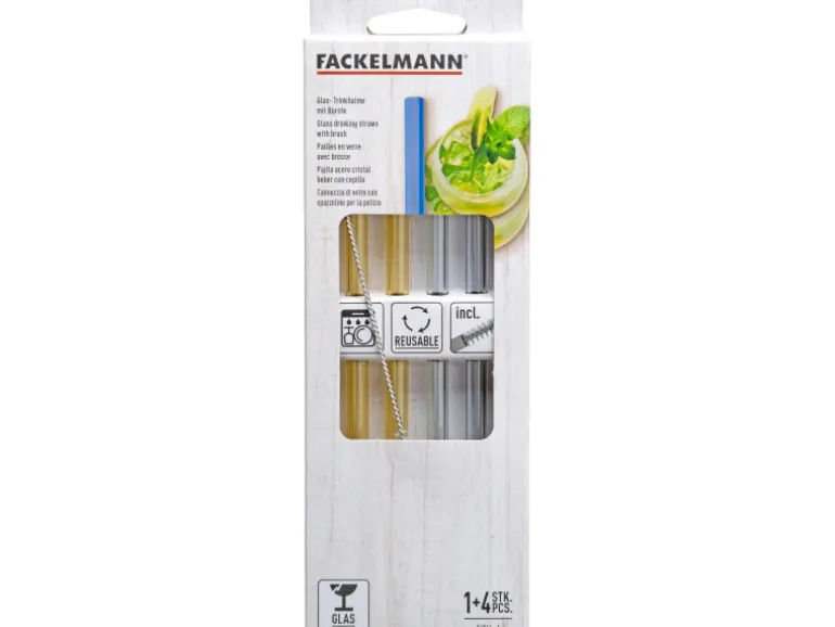 Im Lieferumfang sind 4 Glastrinkhalme und eine Bürste enthalten.