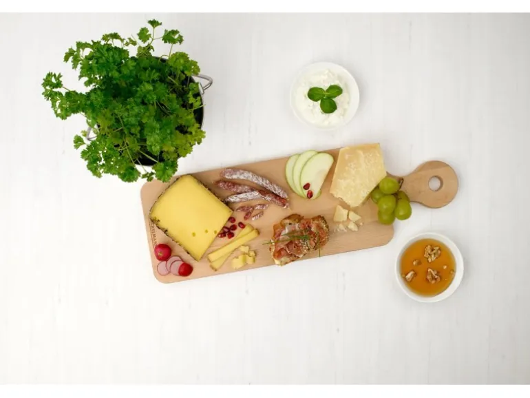 Das Fackelmann Schneidebrett Nature (15 x 45 cm) aus zertifiziertem Buchenholz eignet sich ideal für die Zubereitung und den Genuss von Frühstück oder Brotzeit. Der praktische Griff erleichtert die Handhabung des Bretts. Nach dem Gebrauch kann das Holzbrett einfach und schnell von Hand gereinigt werden.