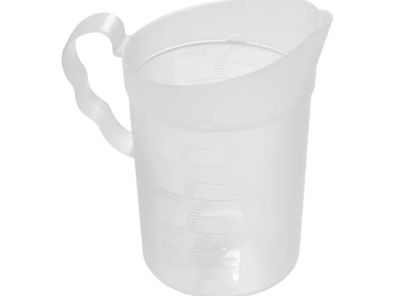 Der Fackelmann Messbecher aus transparent weißem Kunststoff hat ein Fassungsvermögen von 500 ml. Der Becher hat die Maßse von Ø 9,5 cm x 14 cm.