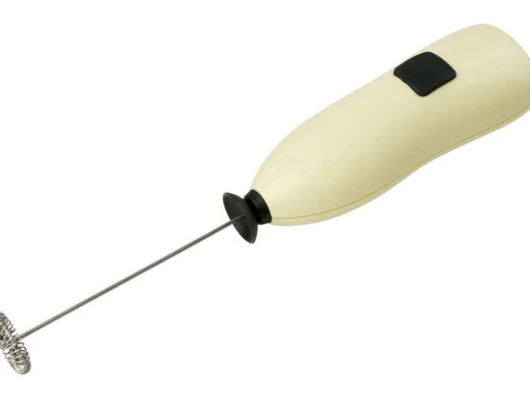 Der Milchschäumer hat eine cremefarbene Farbe und eine schwarze Funktionstaste, die eine einfache und bequeme Bedienung ermöglicht. Der Fackelmann Milchschäumer wird mit 2 AA-Batterien betrieben, die im Lieferumfang enthalten sind.