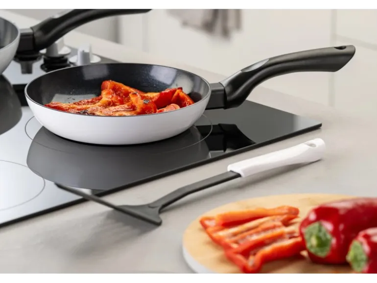 Die Fackelmann Bratpfanne Arcadaline mit einem Durchmesser von 20 cm ist aus gepresstem Aluminium gefertigt und verfügt über eine keramische, PFAS-freie Beschichtung. Der Pfannenkörper in Arcadalina-Weiß passt perekt zu den Küchenhelfern dieser Serie. Mit ihrem ergonomischen Griff aus Bakelit liegt die Pfanne gut in der Hand und ermöglicht eine komfortable Handhabung beim Kochen. Die Pfanne ist backofengeeignet und hitzebeständig bis + 150 °C, wodurch sie vielseitig einsetzbar ist. Weiter ist sie kompatibel mit Gas-, Elektro- und Induktionsherden sowie Glaskeramikkochfeldern.